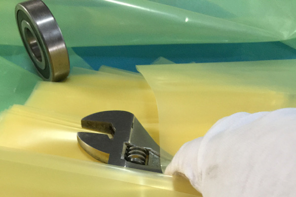 VCI氣相防銹膜(防銹袋)是將高分子聚乙烯樹脂(LDPE)與功能VCI樹脂配比混合,采用現(xiàn)代薄膜共擠技術(shù)生產(chǎn)的新一代復合防銹薄膜。具有良好的氣化防銹性能、阻隔防潮、使用方便、透明直觀等特點;當用塑料袋包裹金屬產(chǎn)品時,氣相緩蝕劑在封閉空間內(nèi)氣化并凝聚在所有金屬表面上形成氣相保護層,從而防止金屬產(chǎn)品銹蝕。符合GB-T19532-2004防銹性能要求。